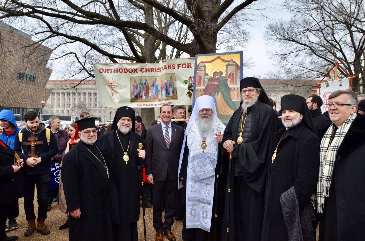 Events on Friday, January 24 will begin with the Divine Liturgy at 8:30 am at Saint Nicholas Cathedral celebrated by His Grace Bishop Daniel of Santa Rosa. Following the celebration of the Divine Liturgy marchers will make their way to the National Mall for the pre-March rally and March. The pre-March rally will begin at noon at 12th St. on the National Mall. Among those scheduled to address the rally will be His Grace Bishop Apostolos of Medeia, of the Greek Orthodox Archdiocese of America, who will offer a prayer on behalf of the Assembly of Bishops.  At the conclusion of the rally, Metropolitan Tikhon will preside at a prayer service for those who have fallen victim to abortion.