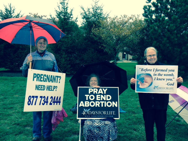 Four ladies from OCLife-Indy braved the rain and prayed at the Planned Parenthood clinic on Georgetown Rd last Saturday at 3 pm. It was well worth it! Glory be to God! The prayer vigil is ongoing until November 4th, so if you have some free time just swing by and join other volunteers on duty 8 am – 5 pm. It is a true blessing to be able to pray there and make a difference.