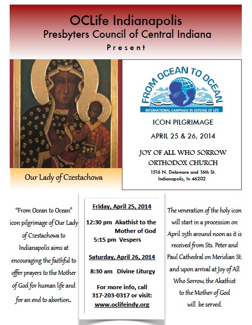 WEDNESDAY, MAY 22, 2013 at 7 pm ~  Moleben at the Joy of All Who Sorrow Orthodox Church, Indianapolis, IN